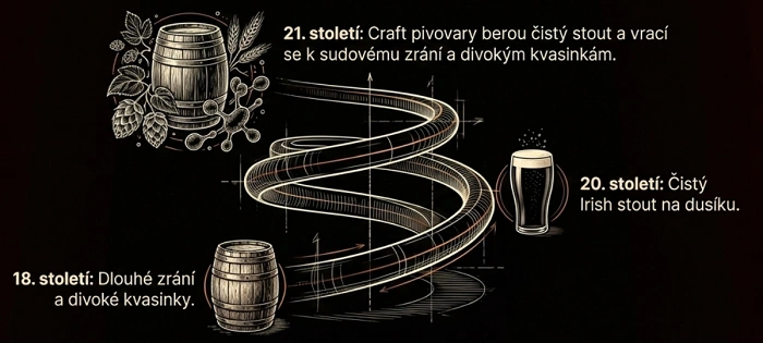 Irové to pochopili okamžitě. Zatímco londýnské pivovary zůstaly věrné tradici, irská scéna se začala posouvat vlastní cestou. Tmavší barva, suší charakter, čistší praženost. Tak se z porteru pomalu začal rodit stout.