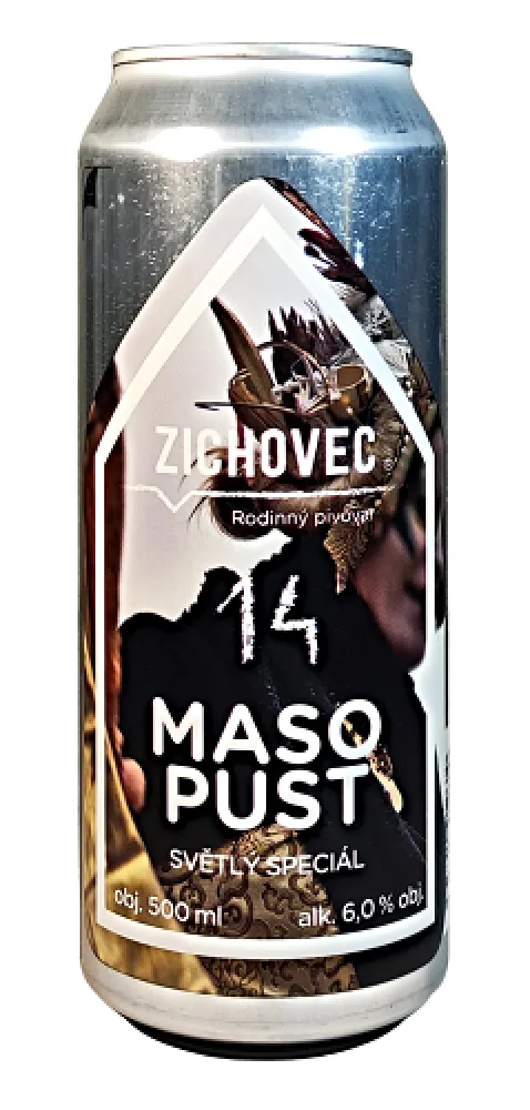 Masopust 14° je světlý ležák uvařený metodou SMASH, kdy celý charakter stojí na jediném sladu a jediném chmelu. Zichovec zvolil plzeňský slad ze sladovny v Kounicích a český chmel Saaz Shine, což pivu dodává čistý a průzračný projev bez rušivých tónů. I přes vyšší stupňovitost zůstává Masopust 14° překvapivě světlý a jemný, s hladkým tělem a výbornou pitelností. Dávka nadstandardních 5 g chmelu Saaz Shine na každý litr piva vytváří výrazné bylinné aroma a pevnou, tradiční hořkost, jaká se u moderních ležáků jen tak nevidí. Pivo je harmonické, lehce kořenité, s jasně definovaným chmelovým charakterem, který krásně vystupuje nad sladem a podtrhuje svěží, vyvážený dojem. Ideální ukázka toho, jak může český ležák chutnat, když se zdůrazní kvalita surovin a jednoduchost receptury.