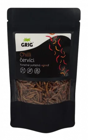 Chilli červíci - Sušení mouční červi s příchutí chilli - výrobce GRIG
