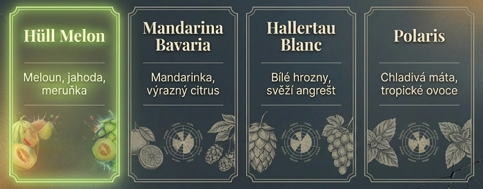 Znáte ten moment, kdy otevřete lahev řemeslného piva a vyvalí se na vás tak intenzivní aroma, že na chvíli nevíte, co si o tom myslet? Přesně tohle zažijete u piv chmelených odrůdou Hüll Melon – honeydew meloun, lesní jahody, meruňky a hrušky v jednom skleněném objetí. A přitom jde o chmel, který vznikl v Bavorsku, ve stejném regionu, kde se po staletí pěstovaly ty nejklasičtější ušlechtilé odrůdy na světě.