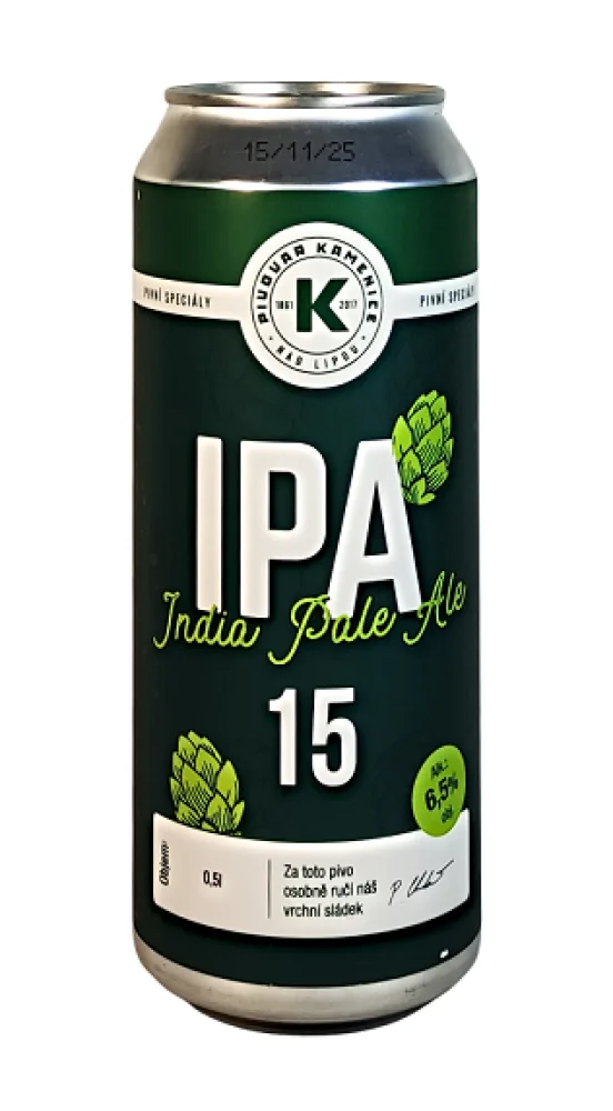 IPA 15 z Pivovaru Kamenice nad Lipou je svěží, svrchně kvašené pivo, které sází na charakter dvou moderních chmelů – Citra a Mosaic. Výsledkem je pivo s výraznou tmavě zlatou barvou, citrusovým nádechem v aroma i chuti a typickou vyšší hořkostí, která se dlouho drží na patře. Dva druhy sladu pak zajišťují rovnováhu a plnější tělo, takže nejde jen o jednorázový výstřel, ale o dobře vyvážený zážitek. Ovocná vůně s tóny tropického ovoce a grepu přechází v chuť, která je intenzivní, ale ne přehnaná. Hořkost je vyšší, ale neagresivní – přesně taková, jakou má moderní IPA mít.