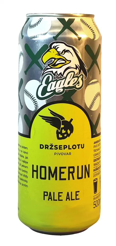 Homerun - to je, když to trefíš a míč skončídaleko za plotem. Ty si oběhneš vítězně všechny mety a na konci si plácneš se spoluhráči. Teď nastáva otázka, jak to oslavit. No jasně! Pivem s kamarády. A nejlépe s pivem Homerun! Tohle pivo vzniklo při jednom posezení s naším přítelem Jirkou z Dugout Cantiny. Slovo dalo slovo a narodilo se nám pivo pod křídly Eagles Praha, jejichž orel na Vás shlíží z plechovky. Je to lehké a voňavé pale ale,které Vás po prvním odpalu nepošle do autu.