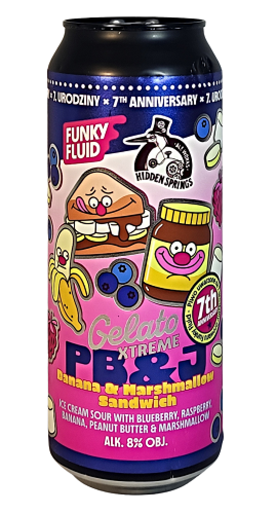 Gelato XTREME: PB&J Banana Marshmallow Sandwich 30° je Ice Cream Sour, který posouvá hranice představivosti i chuti. Pivovar Funky Fluid spojil síly s floridským Hidden Springs a výsledkem je dezertní bomba, která přetéká ovocem, sladkostí a dekadentními tóny. Do hry vstupují borůvky, maliny a banány, které vytvářejí intenzivní ovocnou základnu doplněnou o jemné arašídové máslo a marshmallow, čímž vzniká dokonale vyvážená směs sladkosti a kyselosti. Tento extrémní kousek z dílny Gelato série nabízí plné tělo a hustou strukturu připomínající tekutý milkshake. Pivo je spíš zážitkem než nápojem – připomíná dětství zavřené v plechovce, jen s dospěláckým obsahem. Výrazné ovocné tóny se prolínají s krémovou texturou a bohatou vůní, která v sobě nese tropické ovoce i sladký nádech oříšků a vanilky.