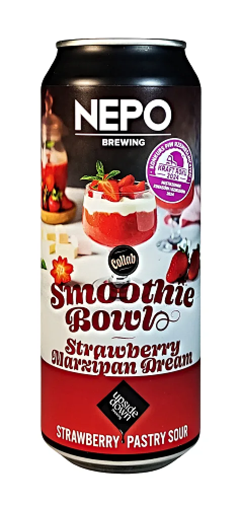 Smoothie Bowl: Strawberry Marcipan Dream je moderní pastry sour, který staví na hutném ovocném základu a dezertním pojetí kyselého piva. Dominantní jahodová složka vytváří dojem čerstvého smoothie, ke kterému se přidává jemná kyselost typická pro sour ale. Plné tělo a krémová textura vznikají kombinací ovoce a pečlivě zvolených doplňkových ingrediencí, které pivo posouvají směrem k tekutému dezertu. Chuťový profil doplňuje marcipánová linka z mandlí, sladkost marshmallow a hladký dotek bílé čokolády. Tyto složky vyvažují kyselost a vytvářejí vrstevnatý, zakulacený charakter bez ostrých hran. Pastry sour styl zde funguje jako platforma pro výraznou chuťovou kreativitu, kde nejde o chmelovou dominanci, ale o harmonii ovoce, sladkosti a svěží kyselosti.
