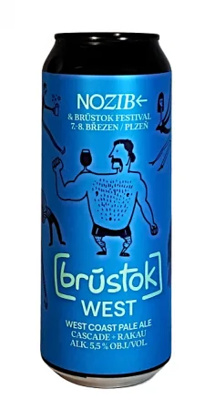 Brūstok West 13° je West Coast Pale Ale vyladěný pro milovníky svěžích a hořkých piv. Pivovar Nozib jej uvařil ve spolupráci s festivalem Brūstok a vsadil na kombinaci chmelů Cascade a Rakau. Výsledkem je vyvážené pivo s křišťálově čistým vzhledem, světlou barvou a osvěžující chutí, kde se snoubí citrusové tóny, květinové nuance a nádech tropického ovoce. Střední hořkost a suchý finiš dávají tomuto Pale Ale příjemnou pitelnost, která se hodí jak na letní festivalové dny, tak na chvíle pohody kdykoliv v roce. Rakau dodává lehkou pryskyřičnou linku, která podtrhuje klasický charakter západního pobřeží USA.