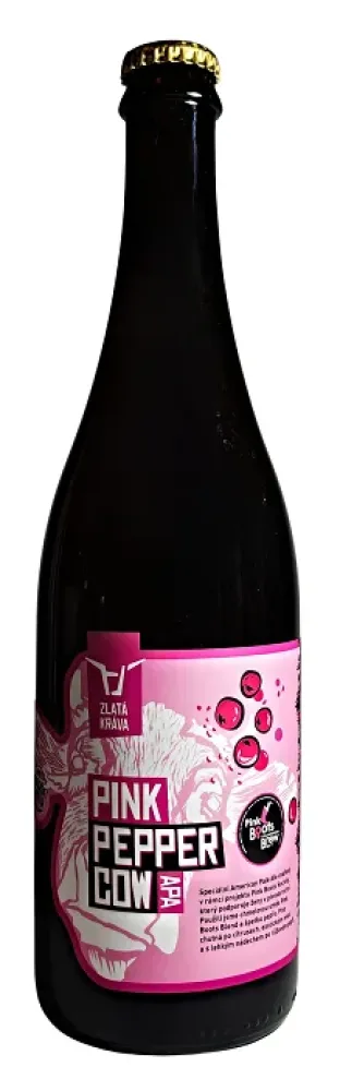 Pink Pepper Cow 11° je moderní American Pale Ale, které stojí na výrazné chmelové kompozici Pink Boots Blend – unikátní směsi vytvořené iniciativou Pink Boots Society podporující ženy v pivovarnictví. V aromatice se prolínají citrusové tóny s nádechem tropického ovoce, zejména marakuji a grepu, doplněné o jemně kořenitý akcent. Ten pochází z přidaného růžového pepře, který pivu dodává lehce pikantní, ale stále velmi elegantní charakter. Chuť je svěží, středně plná a dobře pitelná, s vyváženou hořkostí typickou pro styl American Pale Ale. Chmelová složka hraje hlavní roli – citrusy, exotické ovoce a jemná pryskyřičnost se postupně rozvíjejí na patře a doznívají v suchém, lehce kořenitém závěru. Růžový pepř nepřebíjí, ale vytváří zajímavý twist, který odlišuje toto řemeslné pivo od běžné produkce. Výsledkem je harmonické craft beer s moderním profilem a jasným podpisem použitého chmele.