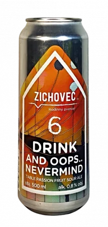 Stolní kyseláček Drink and Oops... Nevermind 6° z pivovaru Zichovec je pivo, které zaujme už svým názvem a nezapomenutelným příběhem vzniku. V tomto pivním pokusu se původně plánovalo vytvořit marakujové kyselé pivo s nulovým obsahem alkoholu, ale výsledný nápoj se nečekaně zastavil na 0.8 %. Takže úplně nealko to není – oops! Tento neplánovaný alkoholický nádech však přidává pivu osobitost a lehký twist, který vám zpestří chuťový zážitek. Pivo vás osvěží výraznou, ale příjemně vyváženou kyselostí s jemně hořkým závěrem, o který se stará chmel Magnum. Právě jeho čistá, intenzivní hořkost a jemný pepřový tón dodávají pivu strukturu a vytvářejí skvělý kontrast s exotickou marakujovou svěžestí. Table Sour Ale Drink and Oops... Nevermind je ideální pro ty, kteří milují nové chuťové zážitky, nebojí se experimentů a hledají lehké letní osvěžení bez obav z vysokého obsahu alkoholu.
