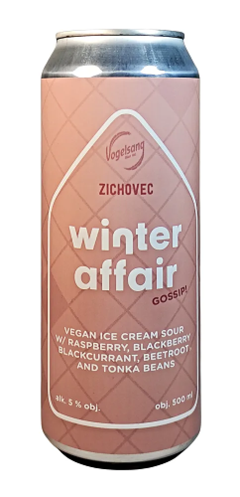 Winter Affair Gossip Vogelsang 18° je Ice Cream Sour, který staví na moderním pojetí kyselého piva s dezertním charakterem, ale bez klasických pastry přísad. Krémovost nevytváří laktóza, ale veganský zmrzlinový prášek, díky kterému si pivo drží hladkou texturu, jemnou sladkost a plnou pitelnost. Profil stojí na výrazné ovocné ose, kde se maliny, ostružiny a černý rybíz spojují do hluboké, šťavnaté kyselosti a intenzivní vůně. Zajímavou vrstvu přidává červená řepa, která podpoří barvu a nabídne lehce zemitý podtón. Finále pak patří tonce – sladké, aromatické a jemně kořeněné, která chuť krásně zakulatí. Výsledkem je Ice Cream Sour, který nabízí kontrast mezi kyselostí, dezertní sladkostí a hladkou strukturou, aniž by sklouzl do pastry stylu. Působí jako ovocný sorbet se zmrzlinovým nádechem, komplexní a výrazný, přesně ve stylu série Winter Affair Gossip.